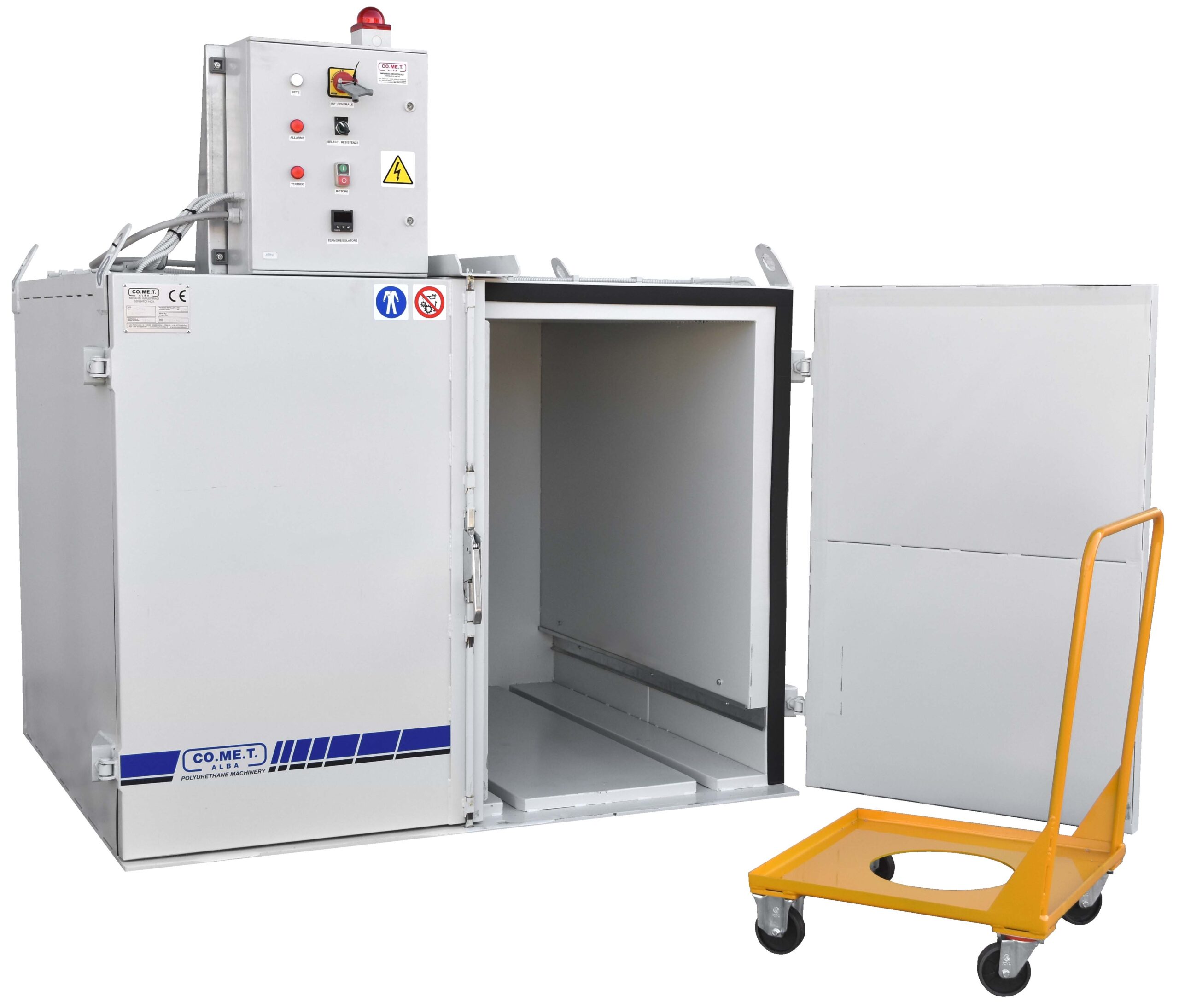 Il forno per fusti (o IBC) è il sistema più comodo per il riscaldamento simultaneo di 4 fusti da 200 litri, può accogliere anche un cubo IBC da 1000 lt.