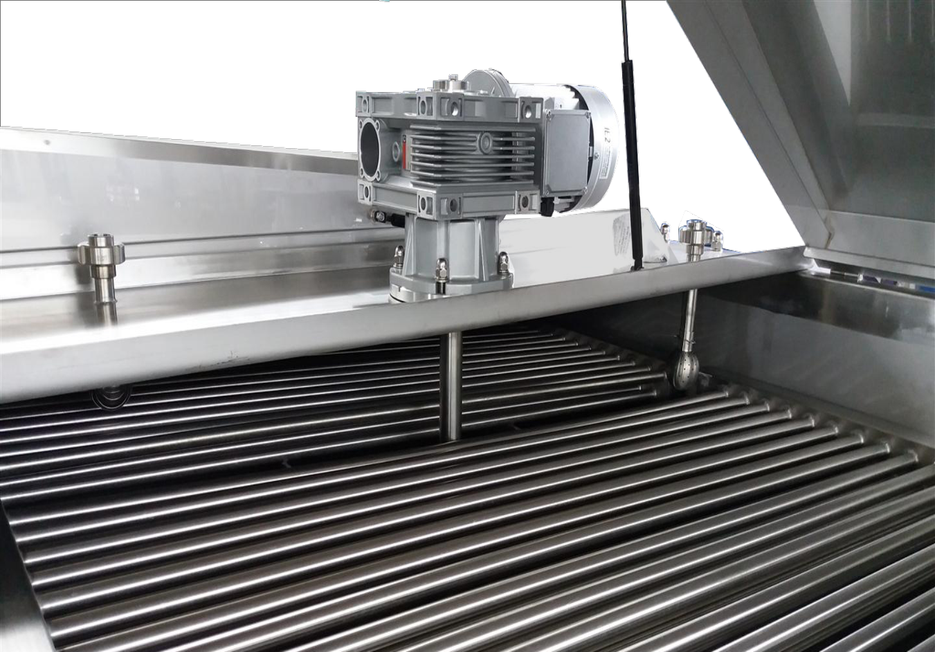 - Agitatore a pale quadre per mantenere in movimento i pezzi di prodotto tagliati dalla rastrelliera, ed agevolarne così la fusione.